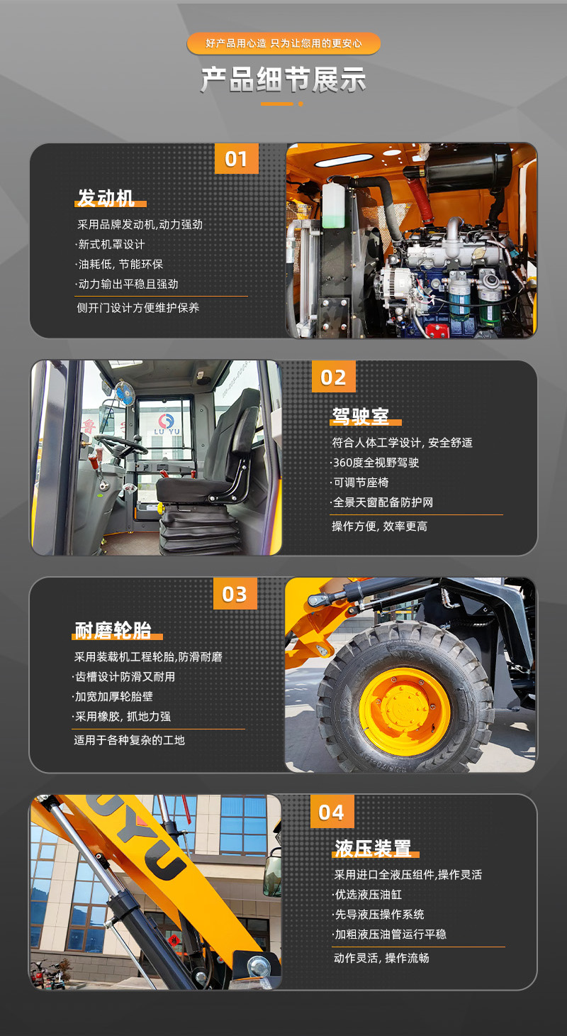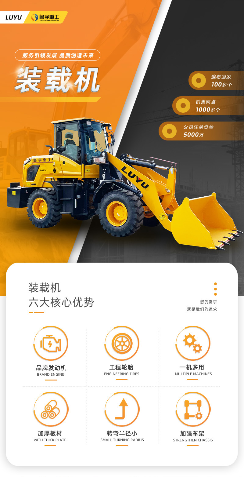 魯宇重工裝載機系列產(chǎn)品,均選配優(yōu)良的配件,符合人性化需求:加油嘴外引設(shè)置,注油簡便,易于集中加注黃油; 精細化管路設(shè)計,合理化管路布局,美觀實用、易檢易修; 鏟斗自動放平,減輕駕駛員疲勞強度,單泵分流,優(yōu)先符合傳感轉(zhuǎn)向系統(tǒng),經(jīng)濟節(jié)能; 單桿操縱,減輕駕駛疲勞提高工作效率,四輪鉗盤式制動可靠; 對中設(shè)計,轉(zhuǎn)彎半徑??;負荷傳感同軸流量放大轉(zhuǎn)向,輕便、靈活; 理想作業(yè)速度與40度轉(zhuǎn)向角度大幅提升工作效率;國際標準降噪技術(shù),保護駕駛員身心健康,業(yè)內(nèi)好口碑散熱系統(tǒng)。