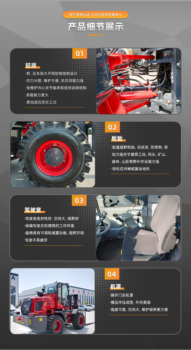 車架系統(tǒng):采用了國外在叉車上應(yīng)用的全浮式駕駛室架,明顯的降低了駕駛室對耳邊噪聲和叉車顫動(dòng)產(chǎn)生的不良感覺,提高了駕駛員和操縱叉車的舒適性。
